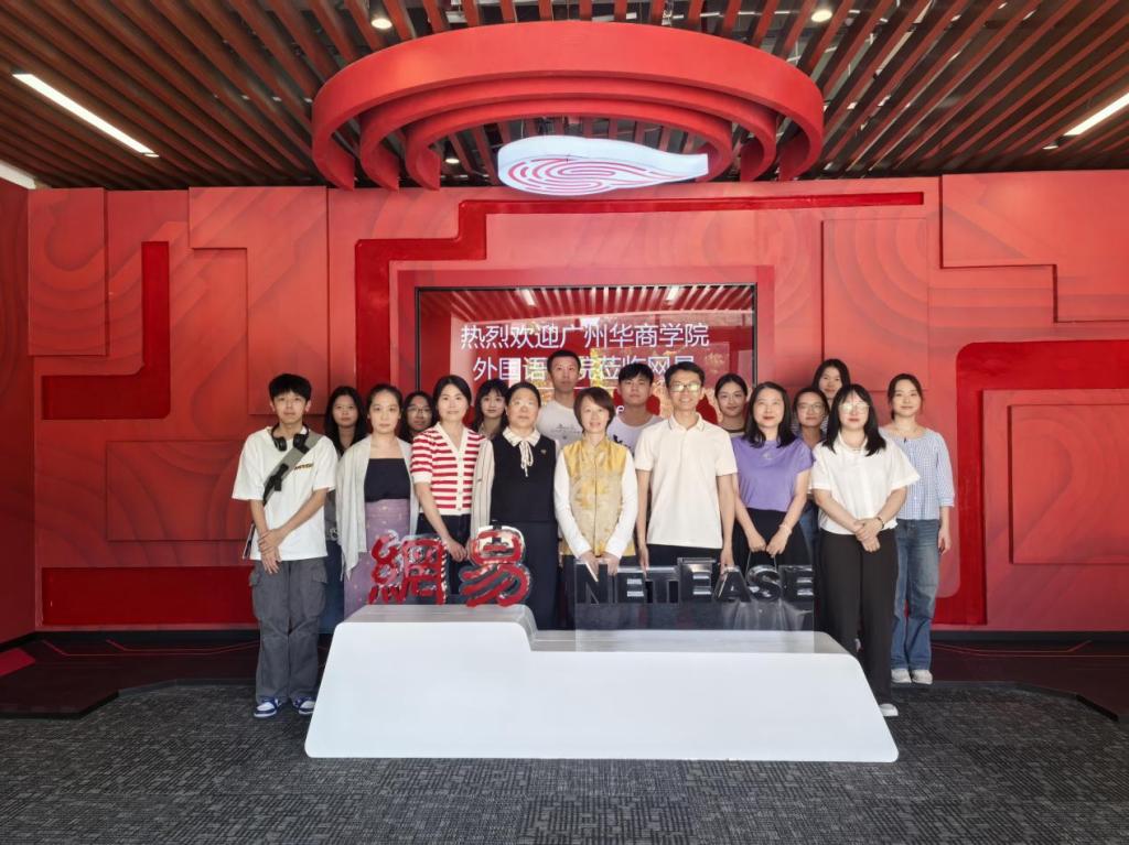 2025年5月12日下午,外国语学院师生前往网易总部开展认知实习暨产教融合基地揭牌仪式。网易有道全国高校数字化负责人李征华、华南区咨询总监王伟邦、华南区总经理助理梁婷之,外国语学院副院长甄玲、副院长何顺发、英语系主任杨润秀、副主任谢瑶、熊梅老师、赵曼翡老师、肖茜老师及英语系实习学生共同参与本次活动。
