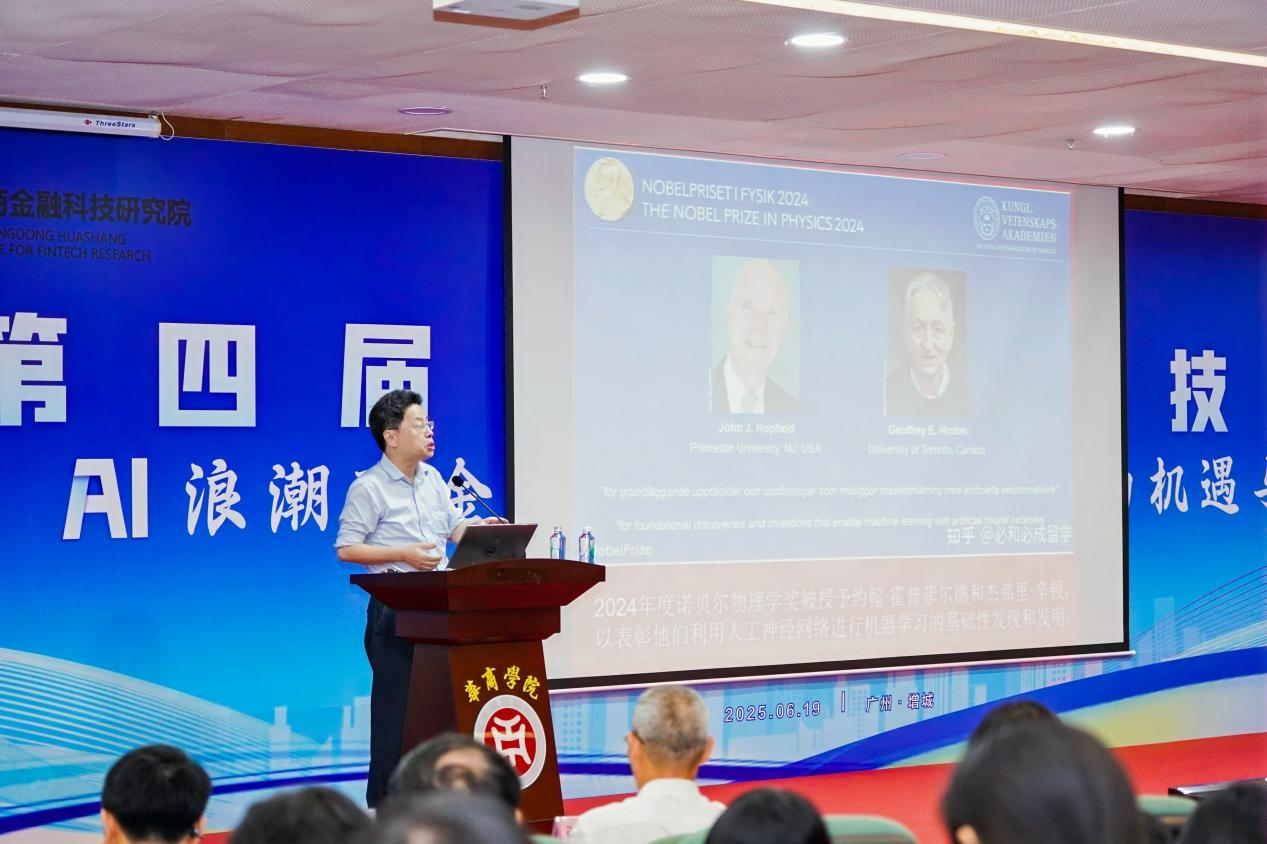 2025年6月19日,由球友会·体育数字金融学院与广东华商金融科技研究院联合主办,广东乡村振兴金融研究中心、华商数字金融省级实验教学示范中心、粤港澳大湾区青年职业发展促进会等单位协办的“第四届华商金融科技论坛”在球友会·体育中央图书馆隆重举行。出席本次论坛的嘉宾有:球友会·体育校长胡军教授,学校副校长、广东华商金融科技研究院院长刘少波教授,校长助理、科研处处长李远飞教授,以及来自南方科技大学、上海财经大学、海南大学、厦门大学、华南理工大学、暨南大学、广东金融学院等知名高校的专家学者。此外,中国建设银行、东方证券、广州黄埔融和村镇银行、华夏银行以及同花顺、深圳点宽等金融机构和金融科技企业的业界精英齐聚一堂。数字金融学院领导、教师及全体学生也积极参与了此次盛会。