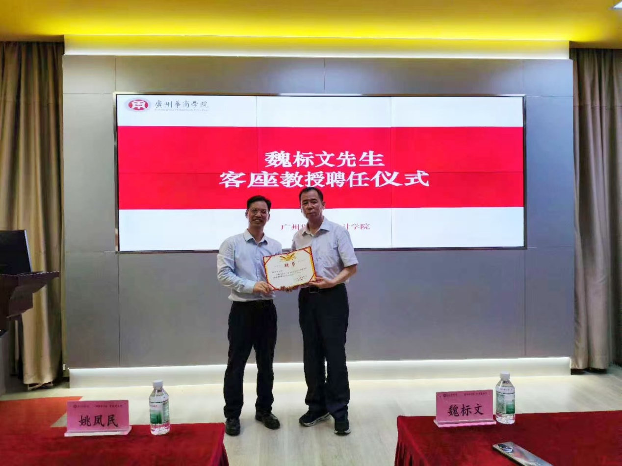 在讲座正式开始前,会计学院院长姚凤民教授代表学院向魏标文先生颁发了客座教授聘书,正式聘请魏标文先生为会计学院的客座教授。