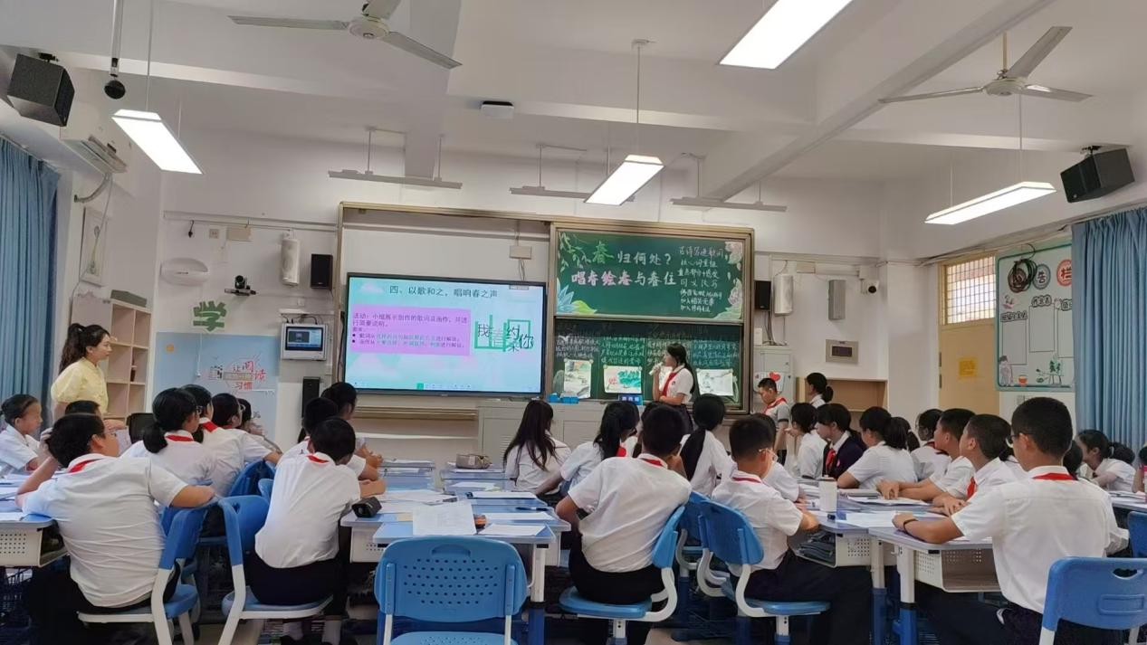 (六年级跨学科学习活动展示课《春归何处?且随诗词与春住》课程现场)