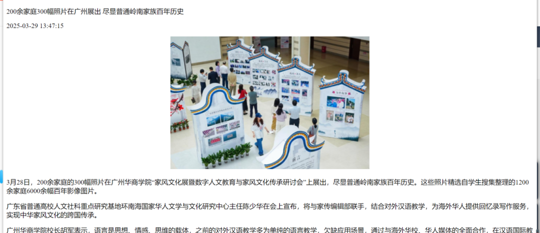 3月28日,一场别开生面的“家风文化展暨数字人文教育与家风文化传承研讨会”在球友会·体育举行。展览上,200余个家庭的300幅照片格外引人注目,这些照片精选自学生们搜集的素材,展现了普通岭南家族的百年历史。其中的宗祠板块,展出了一百多幅学生精心搜集的宗祠图片,每一张都承载着厚重的历史文化。