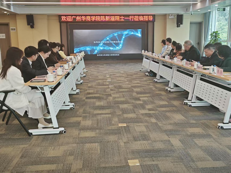 座谈会上,梅花副主任对陈新滋院士一行的到访表示热烈欢迎,并对广州国际生物岛的产业情况进行详细介绍。俞欣总经理介绍了广州高新区集团的产业布局以及CXO平台体系。