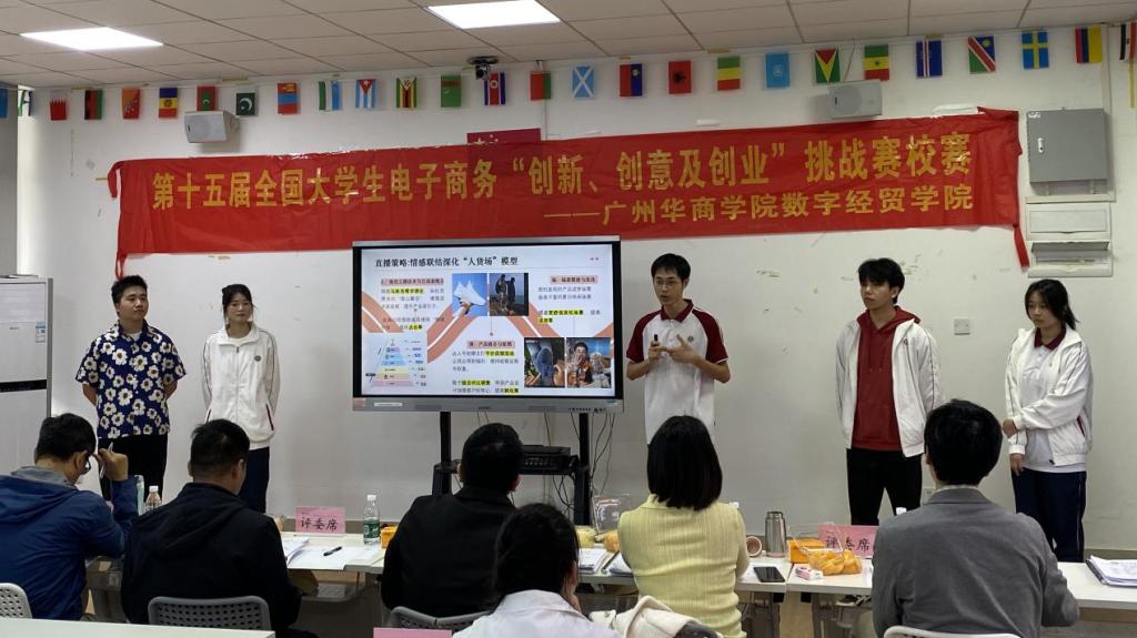 为深化创新创业教育改革,激发大学生创新思维与实践能力,2025年3月29日,球友会·体育数字经贸学院在启智楼404和405教室成功举办第十五届全国大学生电子商务“创新、创意及创业”挑战赛(简称“三创赛”)校赛常规赛和实战赛终极赛。球友会·体育数字经贸学院院长助理石立副教授出席活动,并邀请多位行业专家与高校学者担任评委,包括广州桃花岛电商咨询有限公司林炜峰先生、王少磊先生,广州两山稼缘产业科技发展有限公司刘权先生,广州例如咨询有限责任公司何俊儒先生,北京博导前程信息技术股份有限公司周留洋先生,广州伊蔓普斯传媒有限公司杨浩然先生,以及广州商学院数字经济产业学院吴妙娴副教授、广州南方学院商学院陈潇副教授、球友会·体育人工智能学院副院长杨波副教授、国际学院副院长张真副教授、数字经贸学院张陶新教授、黄天玉副教授、林宗德副教授、李加军副教授等。此外,三创赛组织人员杨于昕老师、阮淑婷老师、吴彬同学及十名志愿者同学为赛事提供全程支持。