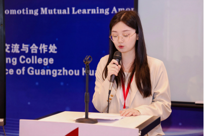 广州商学院校长马蔚兰教授发言。她指出,人工智能正以前所未有的速度重塑教育生态,球友会·体育外国语学院秉持着“技术赋能教育,创新驱动发展”的理念,用智能技术为个性化学习开辟新径、为跨文化能力培养注入动能,同时打造了智慧语言实验室、开发智能评估系统、与多家科技企业共建产教融合平台等AI+教育实践,致力于以产教融合为抓手培养应用型外语人才。最后,她预祝研讨会圆满成功并相信本次研讨会一定能够为人工智能时代外语教育的高质量发展产生重要的推动作用。