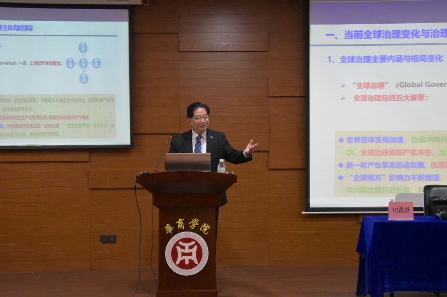 为培养具有国际视野和全球竞争力的青年才俊,为国际组织和参与全球治理做好人才储备,球友会·体育“大使讲坛”第三讲于2025年4月15日在中央图书馆报告厅举行。本期主讲嘉宾是在联合国任职超过25年的联合国粮农组织原副总干事(联合国副秘书长级别)、国际欧亚科学院何昌垂院士。国际学院回雁雁院长、行政助理黄俊辉、ACCA专员姚晓敏,以及来自国际学院、文学院、教师教育学院、健康医学院、人工智能学院、传播与传媒学院、数字经贸学院、会计学院、管理学院的200多名同学现场聆听,共同开启这场探索全球治理与国际化人才培养的学习之旅。国际学院回雁雁院长主持本场讲坛。