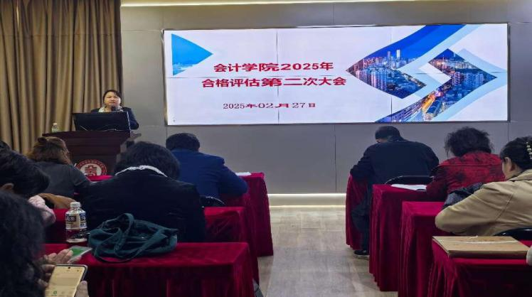 2025年2月27日下午,会计学院在学院报告厅召开2025年新学期第二次合格评估工作会议。会议由会计学院副院长杨旻主持。