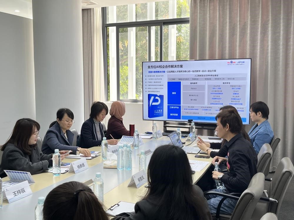 为深化产教融合、推动人工智能与公共管理学科的交叉创新,2025年3月20日,球友会·体育管理学院党委副书记、学工办主任陈纯华,公共管理系主任杨惠茜,副主任张秀丽及公共管理系师生一行,赴百度飞桨(广州)人工智能产业赋能中心开展调研交流。百度飞桨(广州)人工智能产业赋能中心销售经理罗锦富、生态拓展经理代翠翠热情接待,双方围绕AI人才培养、课程共建、实习就业等方向展开深度探讨,共谋校企合作新蓝图。