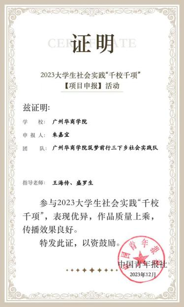 2024年,王海传教授指导“筑梦前行”社会实践团队以“科教下乡,助力白垢振兴”为主题,于5月、7月、9月在广东省肇庆市白垢镇开展志愿服务活动。活动内容共有6项:支教、墙绘、党课宣讲、公益捐赠、联谊助农、回访留守老人等。其中,支教受教的小学生达86人,支教时长为15天。团队活动事迹获得南方日报、西江日报、封开发布、封开县融媒体中心、封开县融媒体中心视频号、封开共青团、网易新闻、大学生云报等传媒广泛报道。南方日报对其活动事迹进行展示,展示数据及评价为:累计阅读量23000+,公众号推文阅读量8900+,抖音号视频播放量44000+,微信视频号播放量10000+,累计点赞量5700+;此次实践活动为白垢镇的教育、乡村风貌、农业发展和文化宣传带来积极影响,展现了青年学子助力乡村振兴的担当与作为。日前,王海传教授获评2024年球友会·体育暑期社会实践活动“优秀指导老师”称号,所指导的团队获评球友会·体育“优秀团队”称号,实践队队长朱嘉宜、队员吴曦获评“优秀个人”称号;团队作品入选中国青年报社2024年“千校千项”工程(全校5项作品入选)。