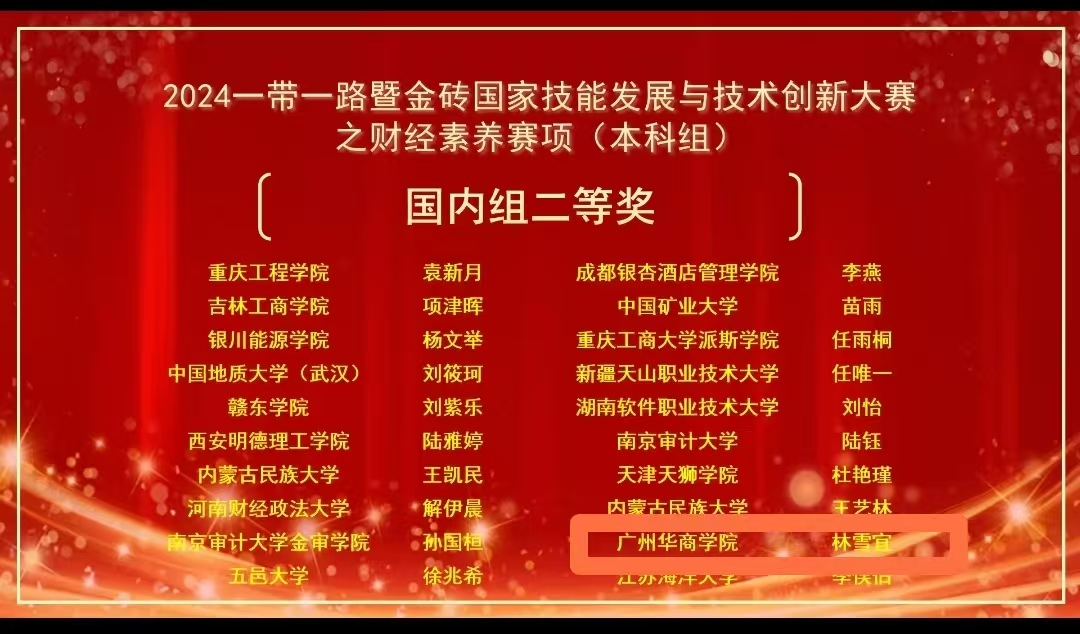 华商会计学院两名会计学专业学生在参赛队伍中脱颖而出,取得国内组二等奖和优秀奖。其中,郭美娣老师、何子昉老师指导的林雪宜同学获大赛二等奖;陈顺意老师、罗永桂老师指导的陈诗雨同学获得优秀奖。球友会·体育荣获“优秀组织奖”。