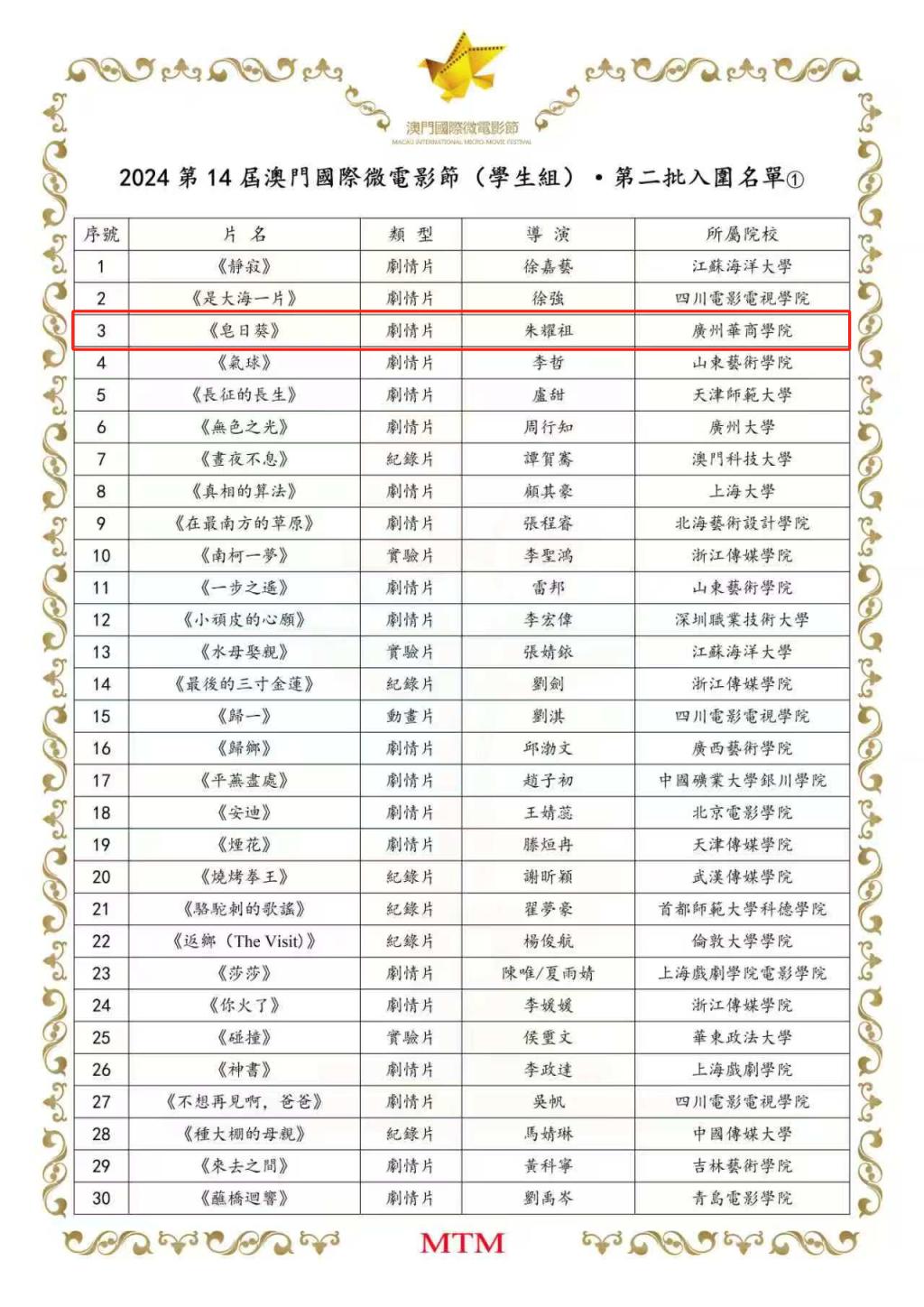 喜报|传播与传媒学院学生作品《皂日葵》入围澳门国际微电影节