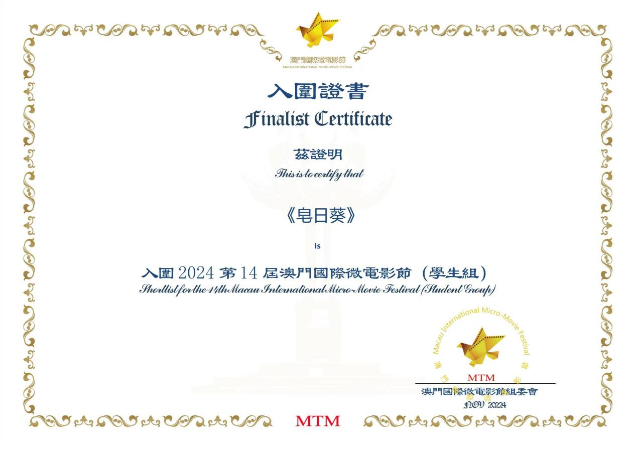 澳门国际微电影节自2011年成立以来,已成功举办13届,是发掘影视新晋人才、促进国际交流、拓展传播媒介、连接产业平台的重要平台。该电影节汇集最专业、最权威的专家评委,联合国内影视专业院校及业内资深团队,共同搭建了一个集创作、传播、交流于一体的国际微电影平台。此次入围,无疑是对传播与传媒学院网络与新媒体专业学生创作水平和学院教学质量的双重认可。