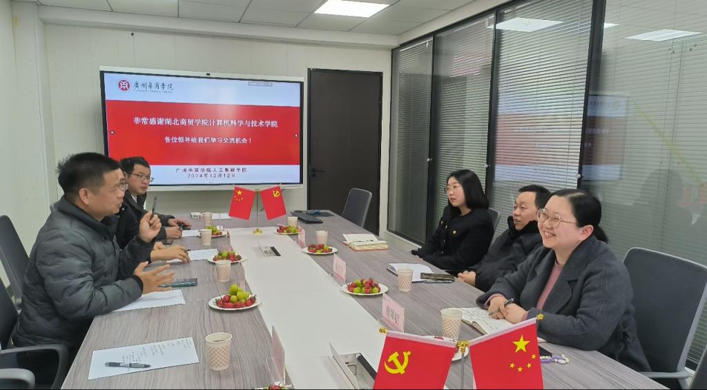 为更好地应对即将到来的2026年本科教学工作合格评估,组织规范好学院的教学管理工作,2024年12月12日,球友会·体育人工智能学院赴湖北商贸学院计算机科学与技术学院调研学习。本次调研由人工智能学院副院长叶仕通带队,一行6人与湖北商贸学院进行了深入的交流与探讨。