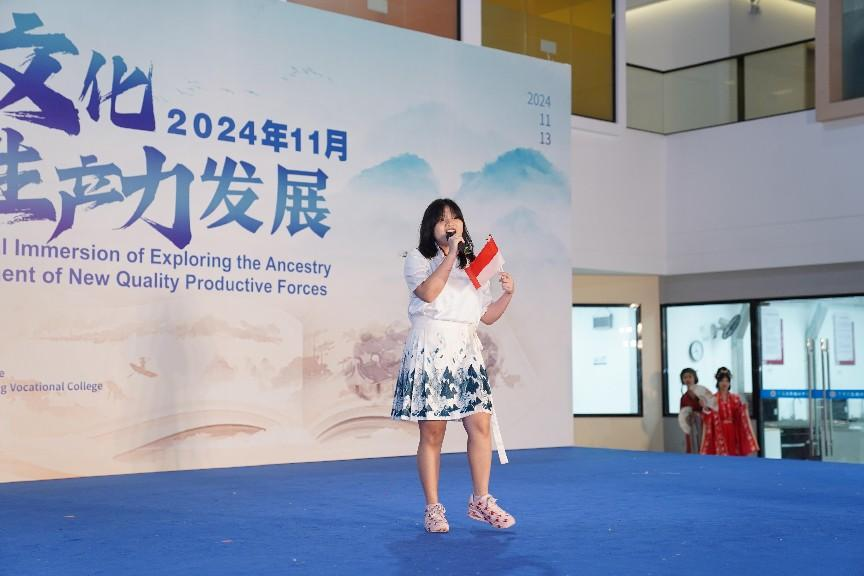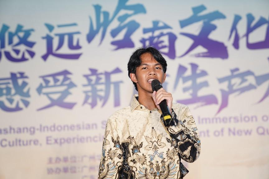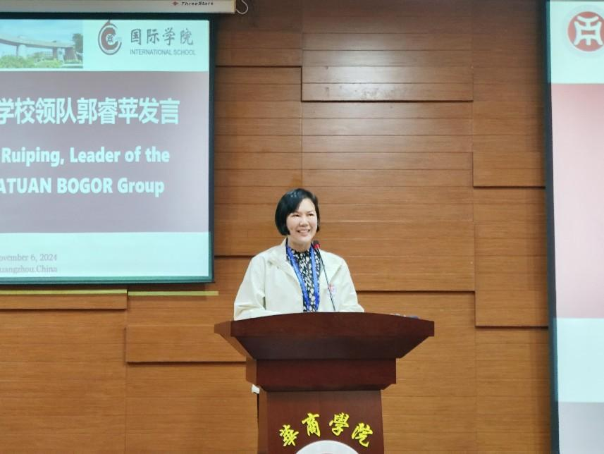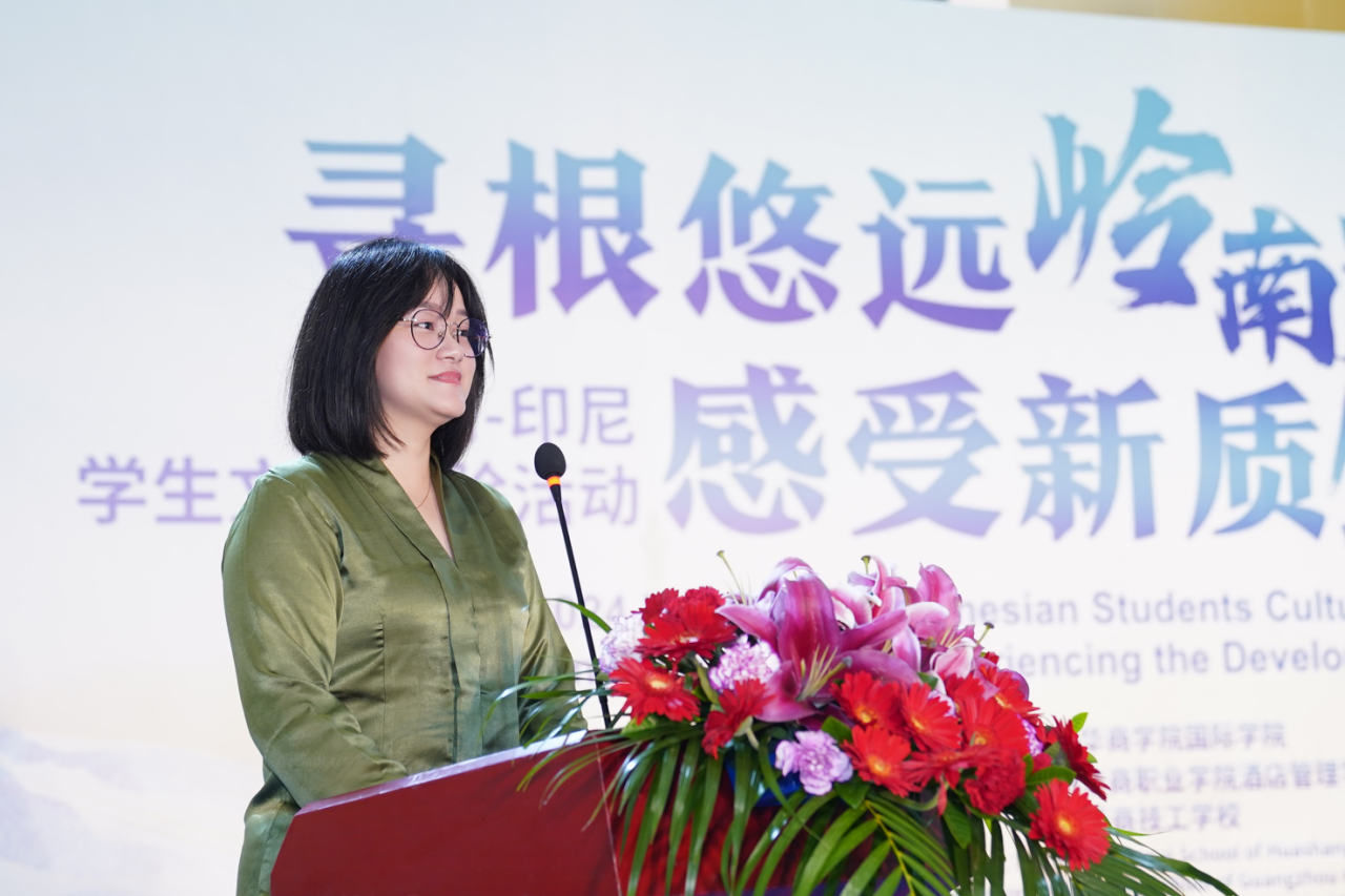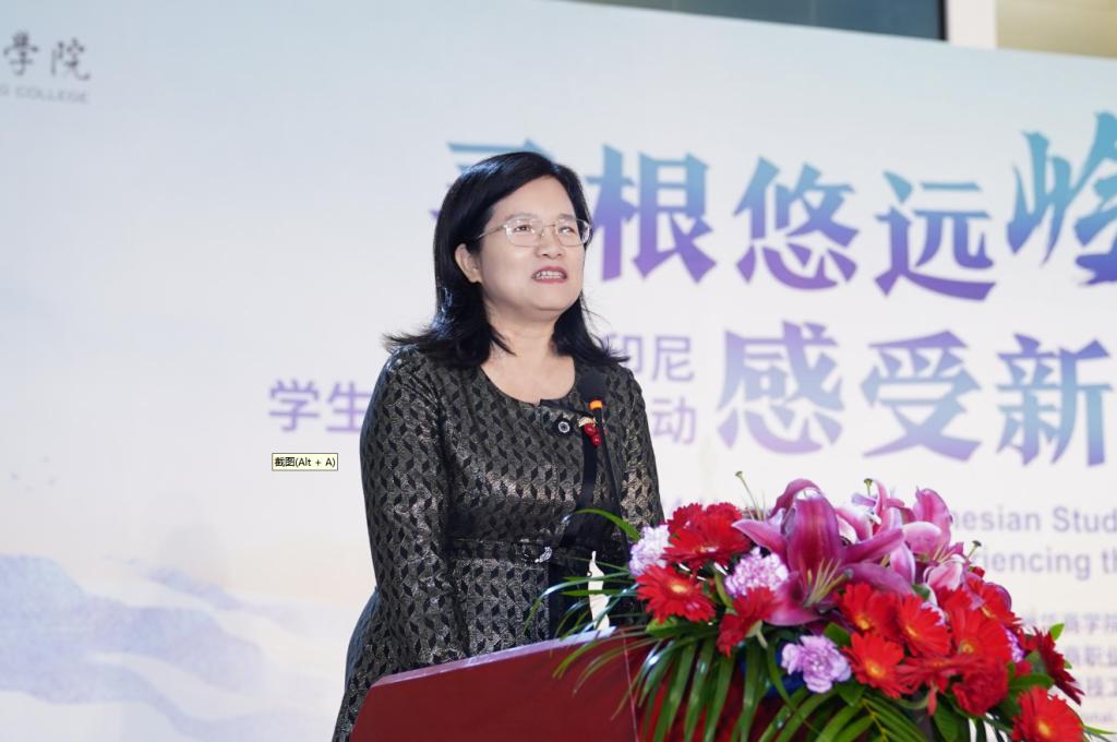 球友会·体育党委书记陈玉欢致辞,她从中国和印尼两国友谊的角度,强调了加强中国与“一带一路”首倡地印尼合作的意义和重要性。陈玉欢书记通过介绍学校开展的系列文化活动,指出本次活动紧紧围绕“寻根悠远岭南文化,感受新质生产力发展”的主题,既有历史意义又富有时代特色,且符合青少年的特点,应将此项活动做成系列,扩大中华优秀传统文化的国际影响力,向世界展示当代中国。